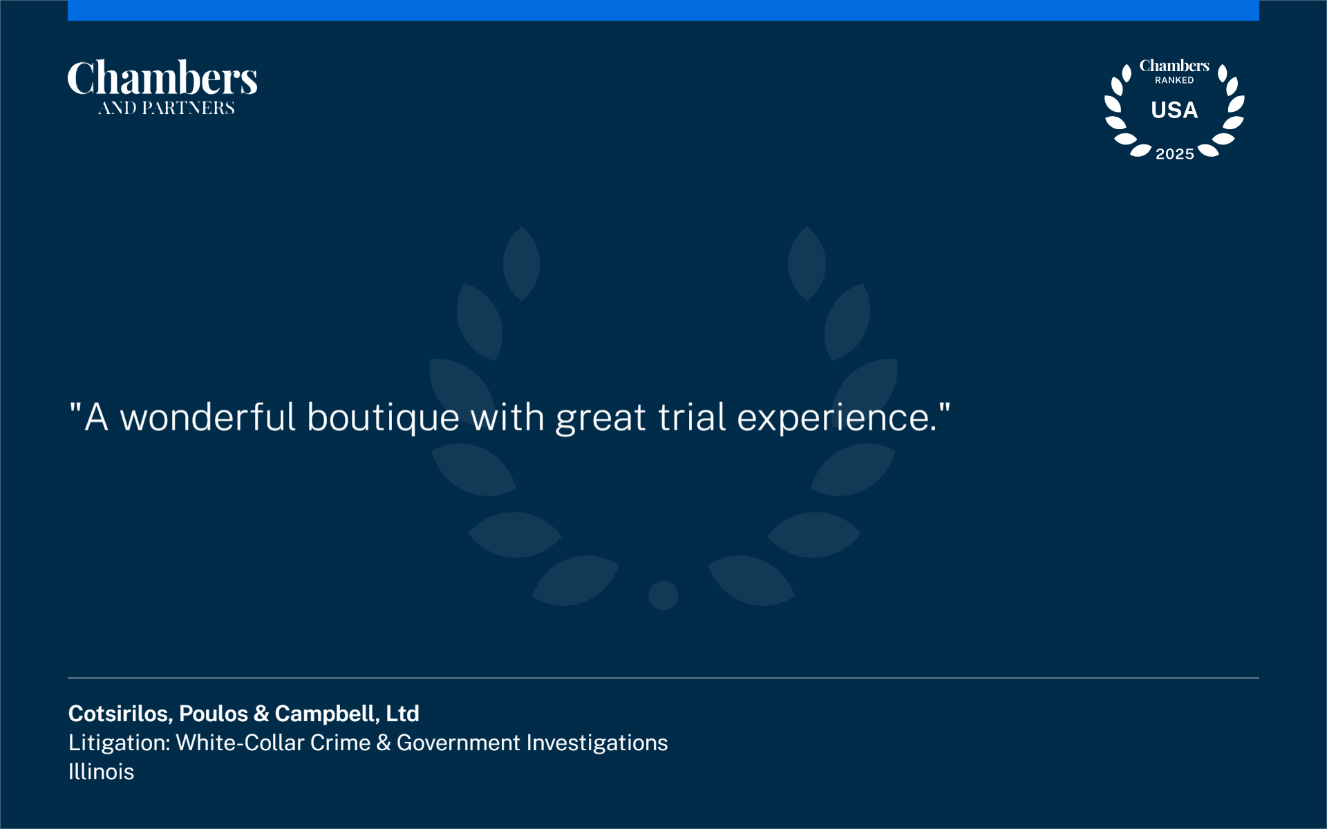 With a national reputation for excellence and a proven track record of success, Cotsirilos is an elite boutique law firm specializing in white collar criminal defense and complex civil litigation.